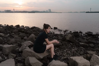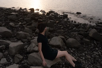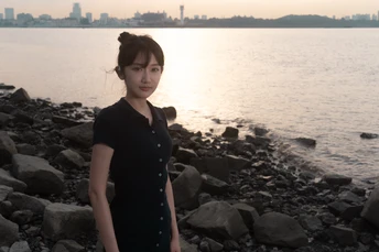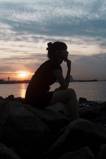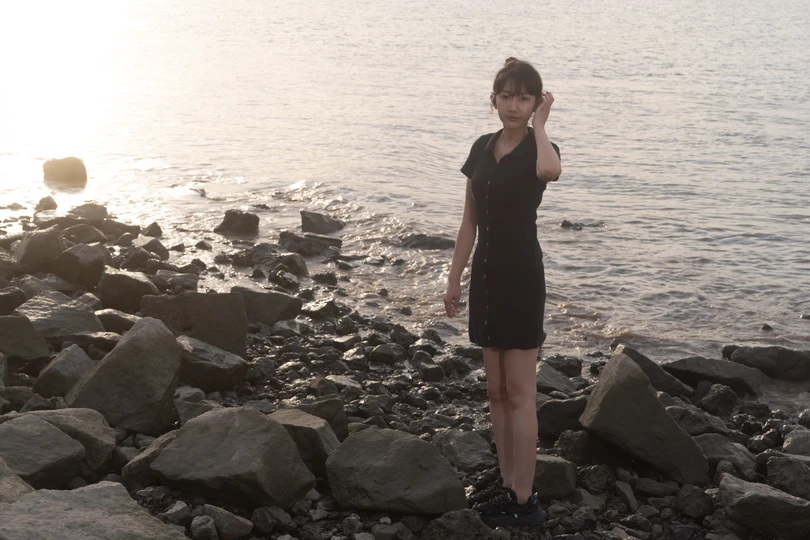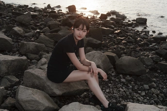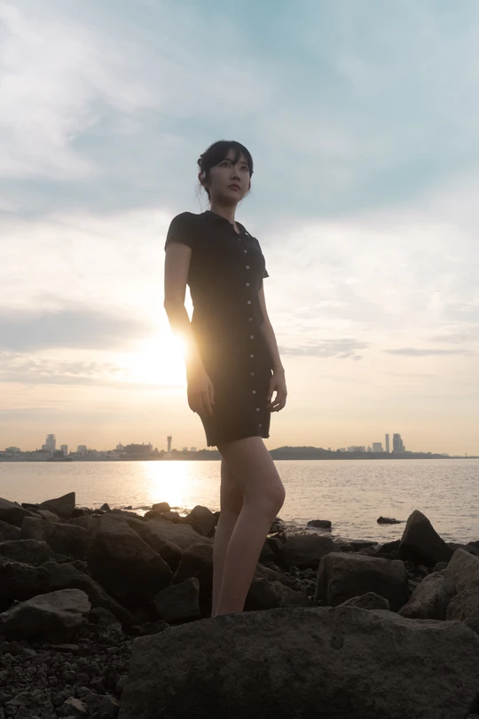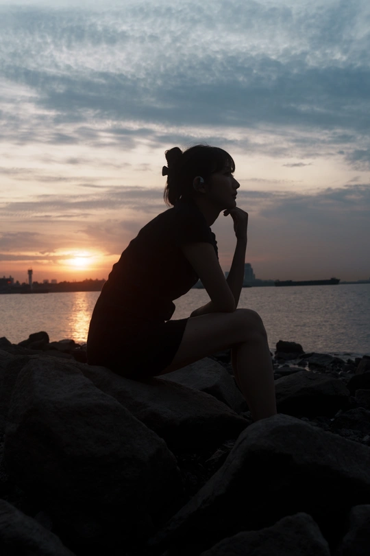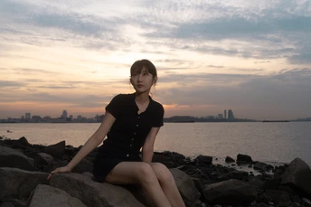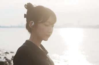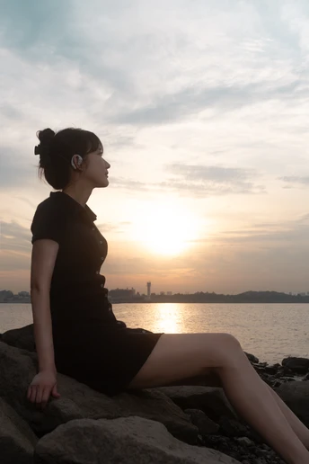夏日的海吹着微风,鬓角的发丝伴随着耳边的音乐在夕阳下舞动