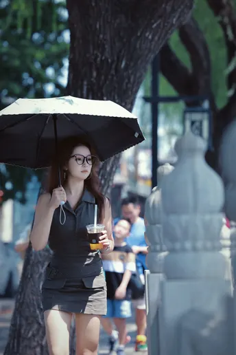 走在街头,眼神中带着一丝忧郁,却也藏着一份期待。阳光与她擦肩而过,却无法触及她内心深处的柔情。