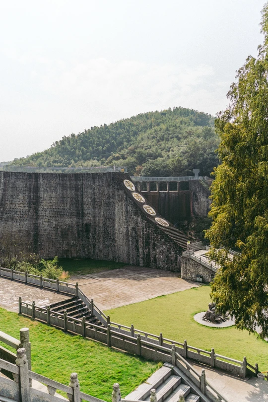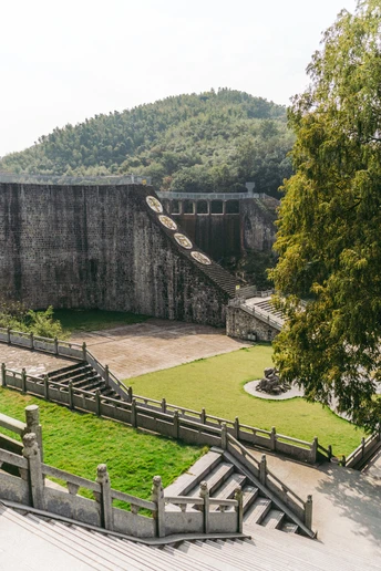 溧阳平桥石坝是一个位于江苏省常州市溧阳市天目湖镇平桥村东南约1.5公里处的壮观水利工程,被誉为"中国最大的非钢筋混凝土水库大坝"和"亚洲最大的浆砌石拱坝"。这座石坝建于1974年至1979年,历时五年建成,坝宽122米,高24米,由无数块整齐的长方形山石浆砌而成,展现了高超的建筑工艺。 平桥石坝不仅是一项重要的水利工程,具有防洪抗旱、灌溉农田和水力发电等多重功能,而且在发水季节,山水从溢流孔中倾泻而下,形成一道宽40米,高20多米的瀑布,成为一道壮丽的自然景观。雨后的平桥石坝尤为迷人,气势恢宏的瀑布景观常常吸引众多游客前来观赏和拍照留念。 此外,平桥石坝还被公布为溧阳市文物保护单位和江苏省不可移动革命文物名录,具有重要的历史文化价值。游客可以通过石头台阶登上大坝顶部,欣赏迎水一面的优美景色,体验这项伟大工程的宏伟与自然景观的壮美。