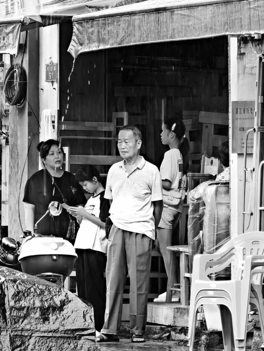 17号午后的湛江市区天气如同台风天,雨下一阵停一阵、又下一阵又停一阵、循环往复,令人不禁烦躁不安。 在赤坎老街周边避雨期间,随机拍摄了阴雨天气笼罩下的老街周边百姓的“众生相”。 Shot on vivo X100 Ultra.