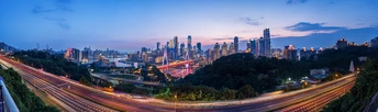 夜晚蓝调下的重庆CBD全景
