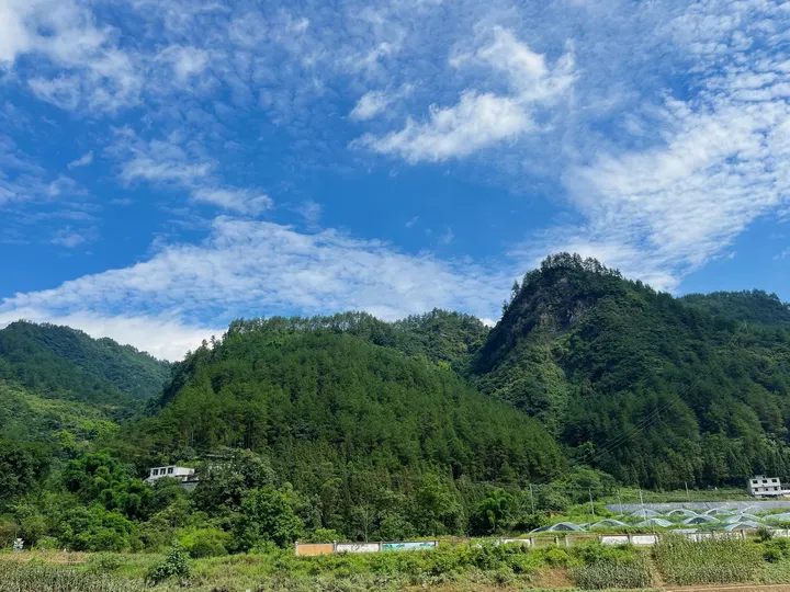 在重庆的山区,中午的阳光,宁静的村庄,祥和的人们,和谐的自然。