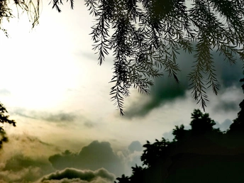 金秋的黄昏,天边映照着落日的余晖,枫叶随风飘散,宛如绚丽的彩霞,为大自然增添了诗意。
