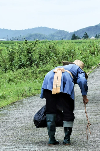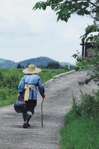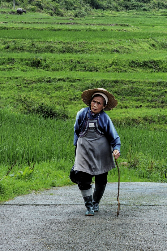 在花溪高坡云顶村偶遇阿婆,蹒跚步履,走走歇歇,眺望远方。