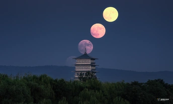 一轮明月从长安塔身后升起,让我想到了李白的《子夜吴歌·秋歌》:“长安一片月,万户捣衣声。秋风吹不尽,总是玉关情。何日平胡虏,良人罢远征。”明月总是代表着思念,古时是妻子对远征的丈夫的思念,今日是我对故乡的家人的思念。 一转眼,离开家乡,远赴西安求学已经六年,每年回家的时日不足半月。看着眼前的满月,想着李白的诗句,心里挂念的却是家乡的亲人。 愿天下看到这轮明月的人终能团圆美满。