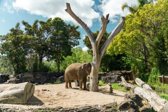 新西兰奥克兰动物园是新西兰最大的动物园,建立于1922年,占地面积约16公顷,拥有近900只来自130多个物种的动物。动物园分为六个主题生态区,包括海滩、岛屿、湿地、夜间动物、森林及山区,游客可以近距离观赏并接触动物。动物园以其独特的新西兰本地动物而闻名,尤其是几维鸟(Kiwi bird),它是新西兰的国鸟和象征,但因其怕光和视力弱,通常在暗处生活,动物园中的几维鸟也饲养在黑暗的环境中。此外,动物园还拥有其他珍稀动物,如白犀牛、环尾狐猴等,以及常见的大象、长颈鹿、狮子等。