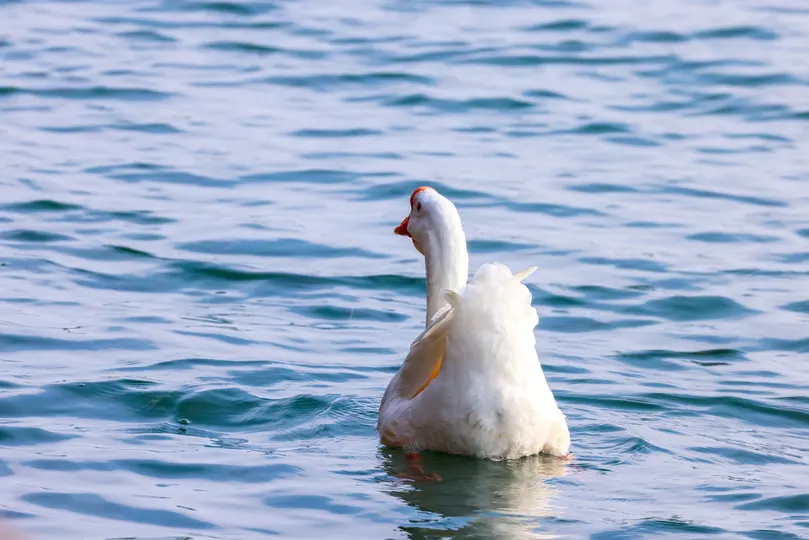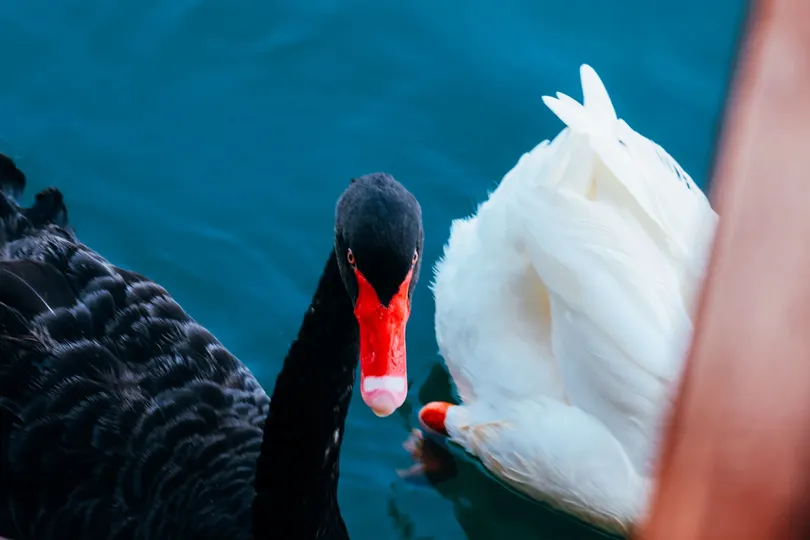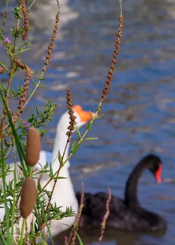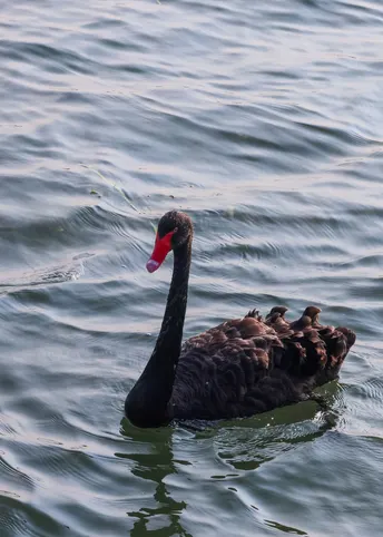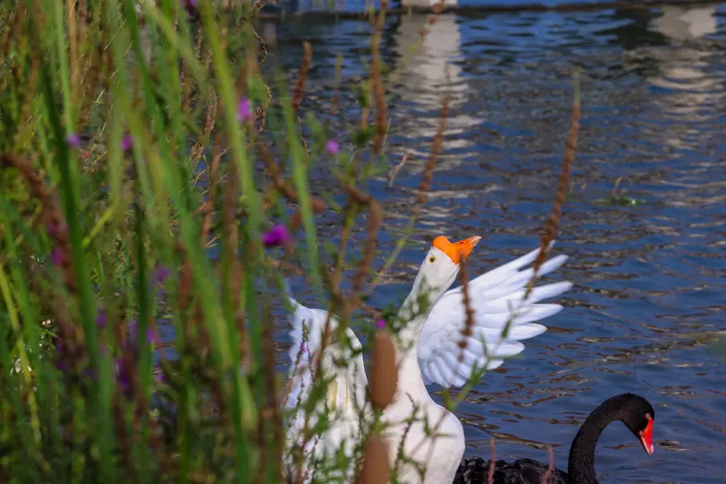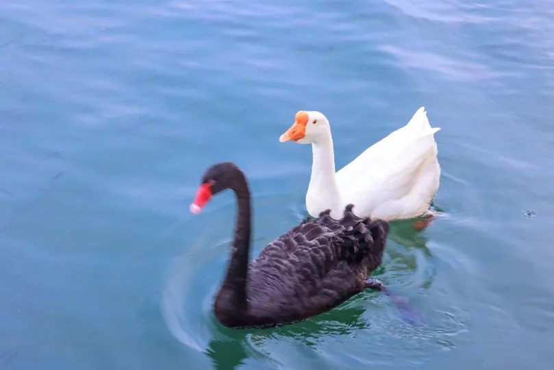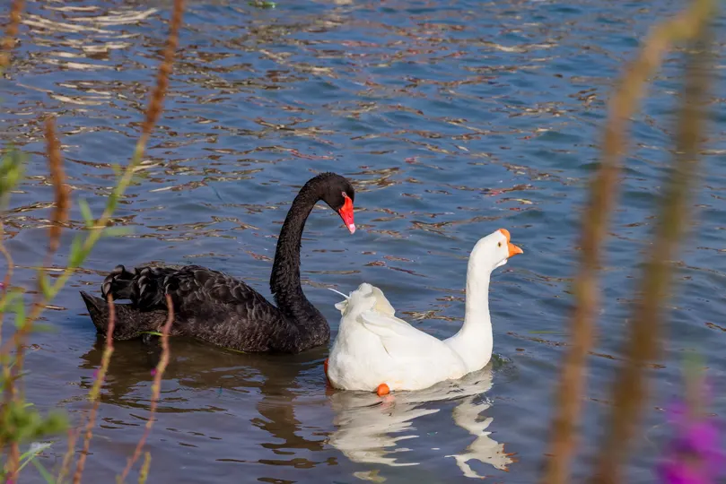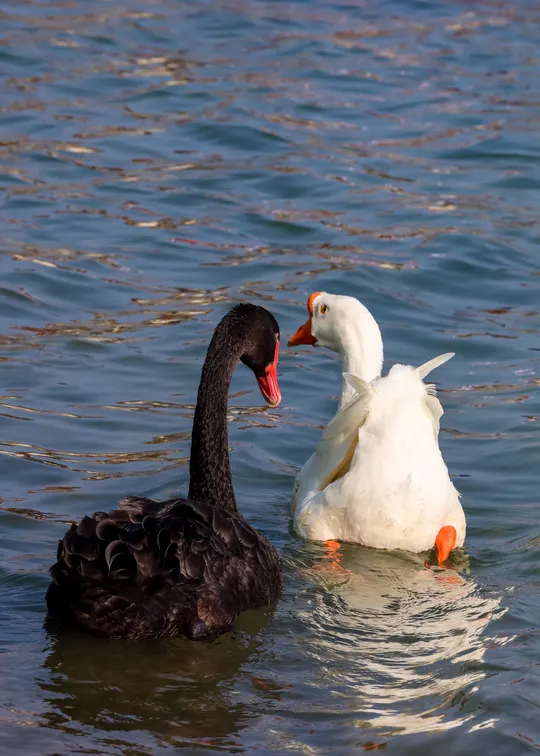 鹅鹅鹅,白毛浮绿水,红掌拨清波。但今天还有一只黑色的。