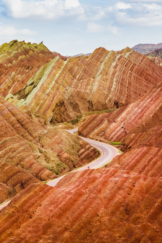 张掖七彩丹霞位于甘肃省张掖市临泽县和肃南县境内,是中国北方干旱地区发育最典型的丹霞地貌,也是国内唯一的丹霞地貌与彩色丘陵景观高度复合区。该景区总面积约为50平方公里,以其丰富多彩的色彩、独特的地貌形态和深厚的历史文化底蕴吸引着无数游客前来探访。七彩丹霞景区以其面积大、集中、层理交错、岩壁陡峭、造型奇特、色彩斑斓而著称,拥有红色、黄色、白色、绿蓝色调,形状有顺山势起伏的波浪状,也有犹如斜铺的彩布,在阳光的照射下熠熠泛光,色彩异常艳丽。