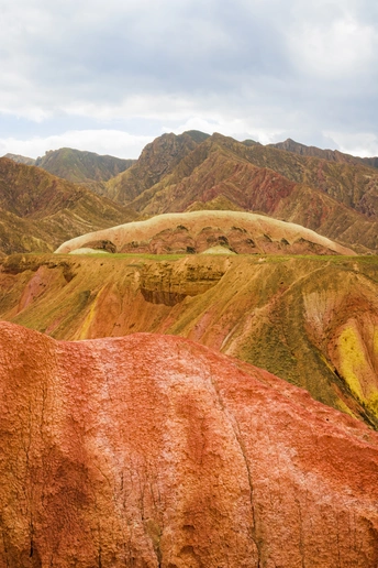 张掖七彩丹霞位于甘肃省张掖市临泽县和肃南县境内,是中国北方干旱地区发育最典型的丹霞地貌,也是国内唯一的丹霞地貌与彩色丘陵景观高度复合区。该景区总面积约为50平方公里,以其丰富多彩的色彩、独特的地貌形态和深厚的历史文化底蕴吸引着无数游客前来探访。七彩丹霞景区以其面积大、集中、层理交错、岩壁陡峭、造型奇特、色彩斑斓而著称,拥有红色、黄色、白色、绿蓝色调,形状有顺山势起伏的波浪状,也有犹如斜铺的彩布,在阳光的照射下熠熠泛光,色彩异常艳丽。