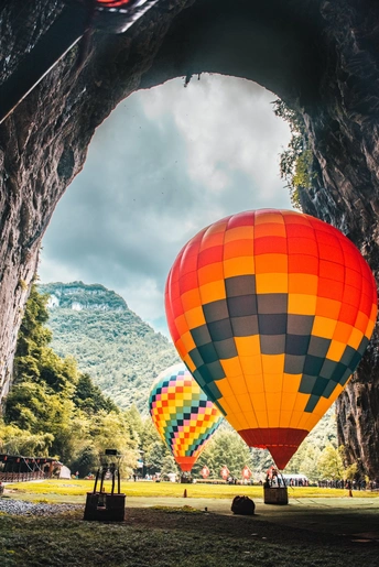 湖北恩施洲利川市腾龙洞景区的热气球。