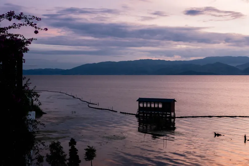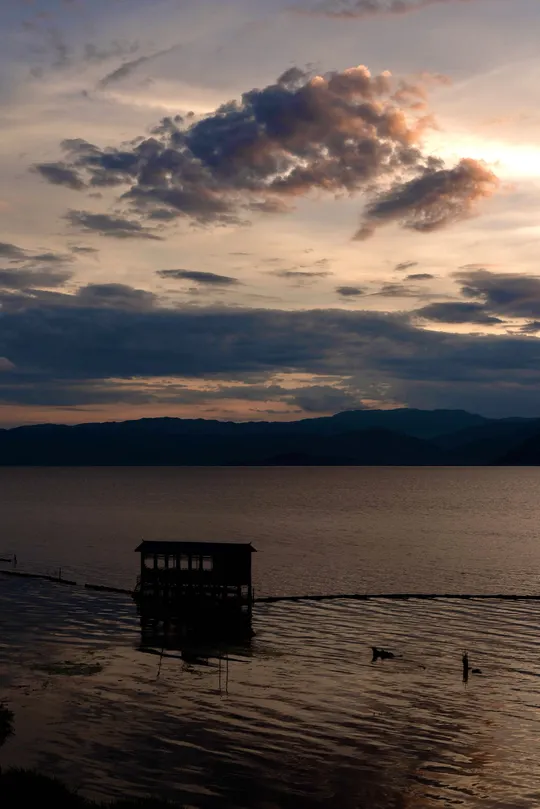 洱海等待日出,见到日出前湖边的色彩变化~