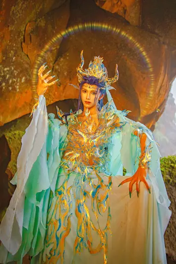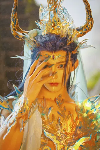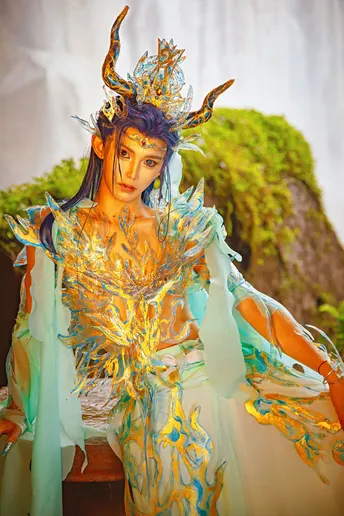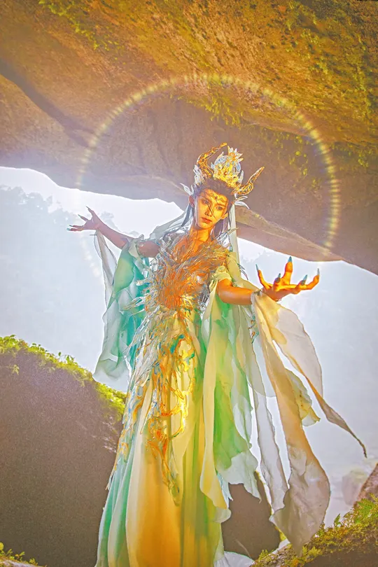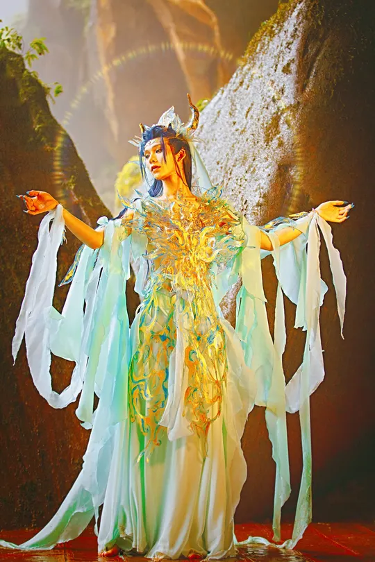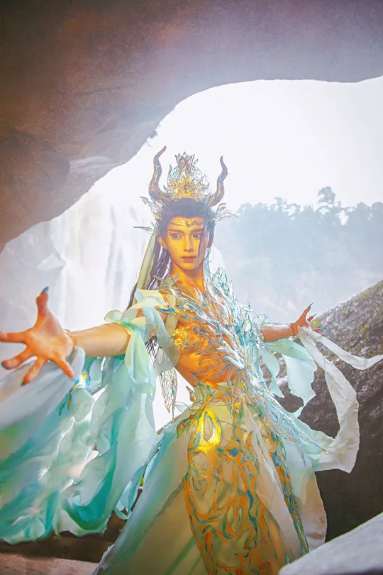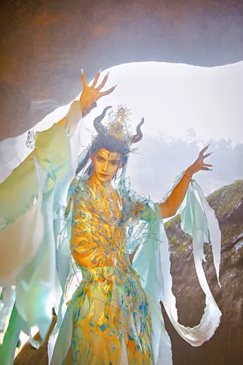 《山海经·中山经》道:“(厘山)有兽焉,其状如牛,苍身,其音如婴儿,是食人,其名曰犀渠。” 服装/拍摄/我 模特/洲洲 妆造/肖肖