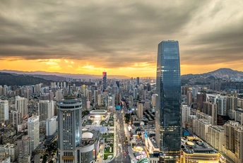 东方红广场的火烧云,与灯光点点相呼应,尽显都市繁华。