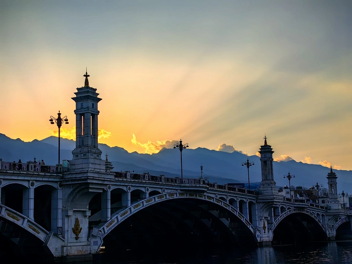 兴盛大桥,落日时分!这里不是塞纳河畔,是大理洱海河畔 大理这个小众的拍照打卡地真的超出片大家一定要来打卡呀!!!