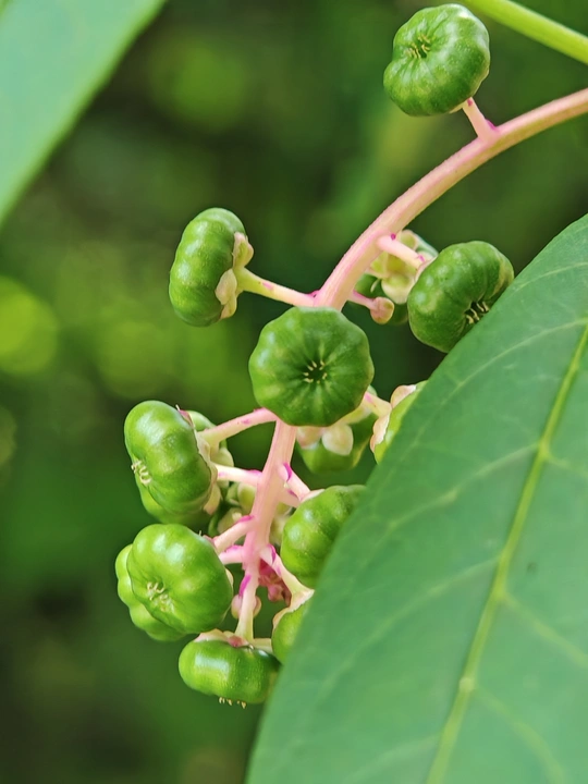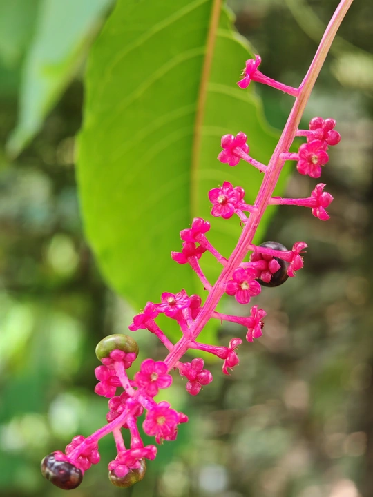垂序商陆茎枝红色,叶片宽大,可种于花盆中观赏。垂序商陆花语为野生、元气。