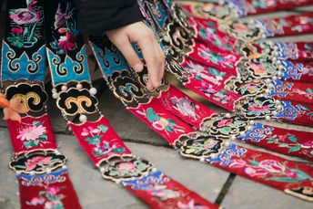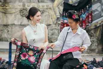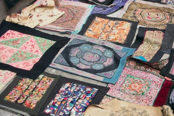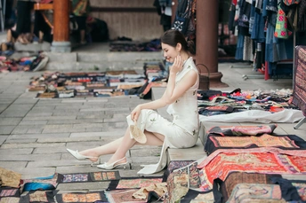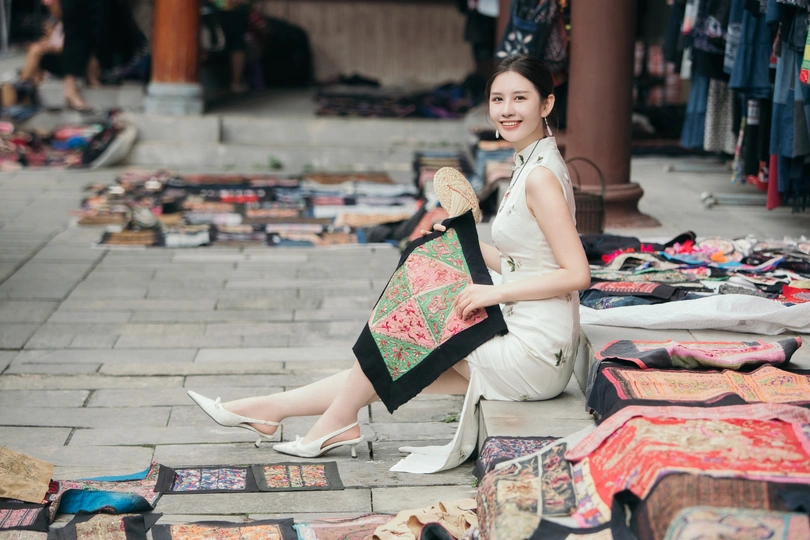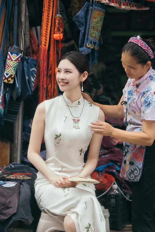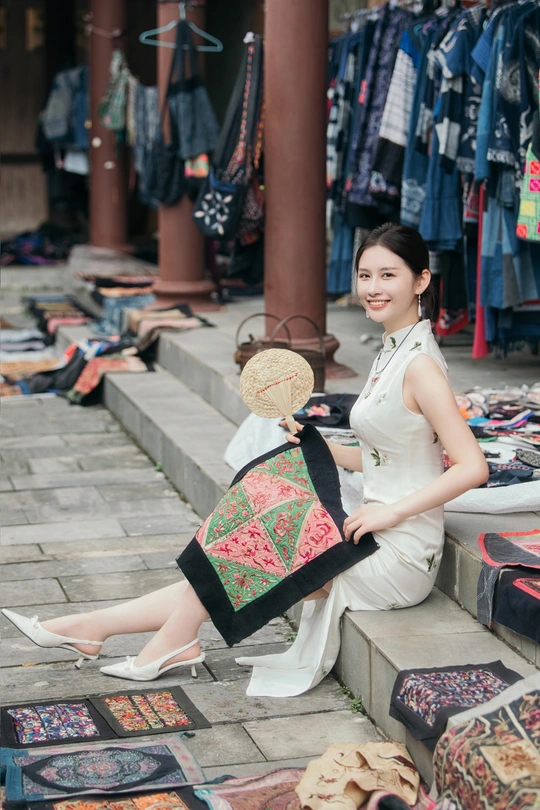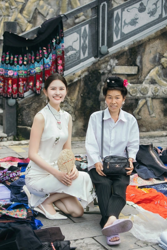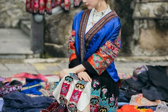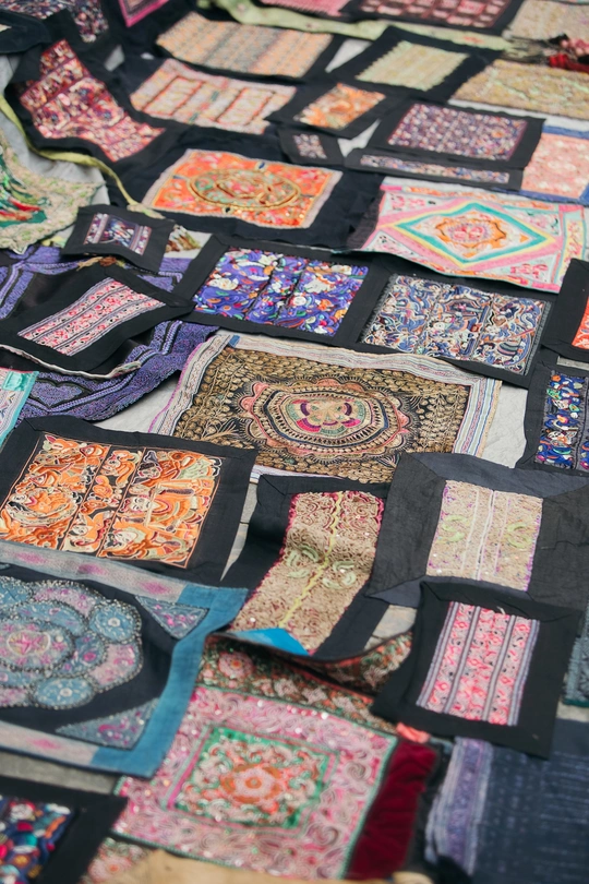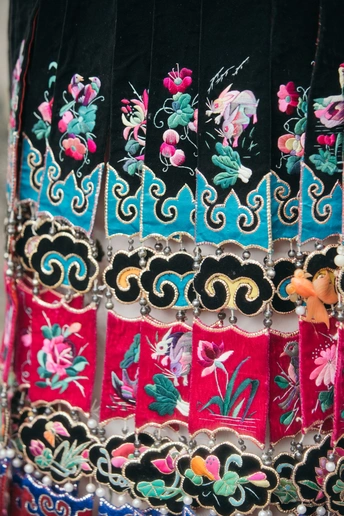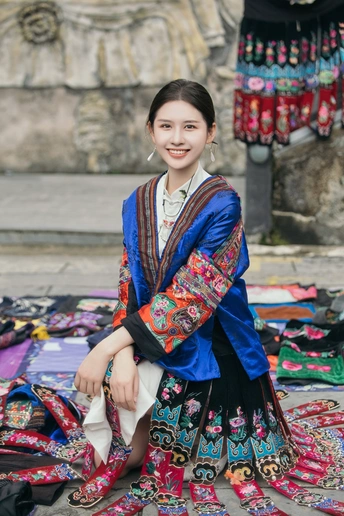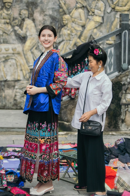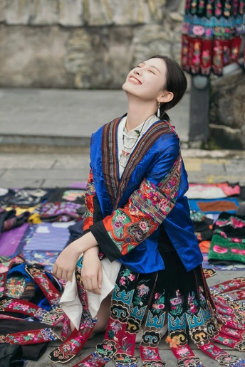 以针为笔,以线为墨,以纸为布。 /贵州旅拍/凯里市集 📷/倩小鱼 (在苗绣中,还有阴阳结合,创造生命的寓意,表达了苗族祖先对自然、宇宙、对生命起源的理解和认识。很高兴在逛凯里绣片市集的时候,遇见了让我们穿上苗服的阿姨。蹲下摆放裙带的时候,她说这就是苗族的婚纱。)