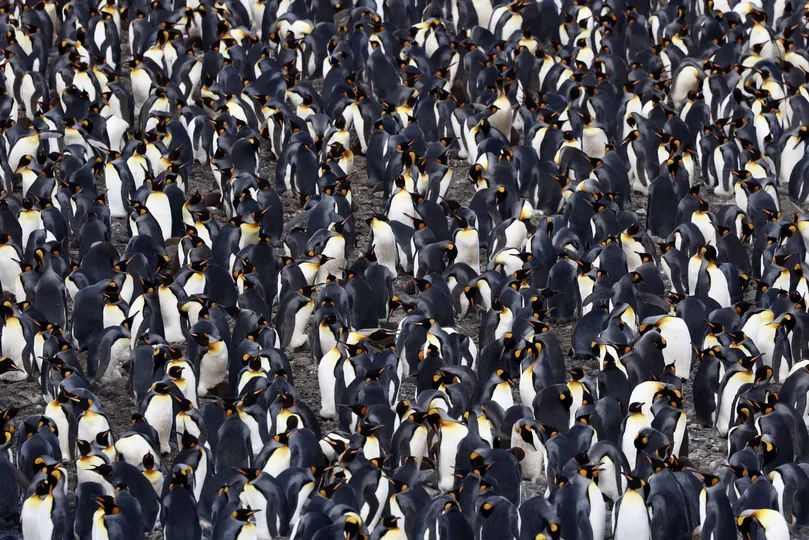 南乔治亚岛是王企鹅的聚集地和繁殖地,成千上万只王企鹅聚集在一起繁衍和哺育后代