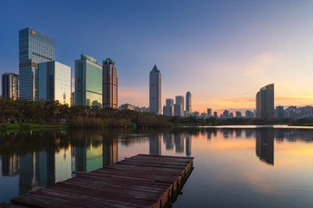 蓝调时分的海口滨海CBD。
