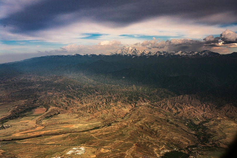 俯瞰天山山脉,犹如一条长龙盘踞西北,雪山常年不化,仿佛似驻守的官兵永不弯曲的脊梁。