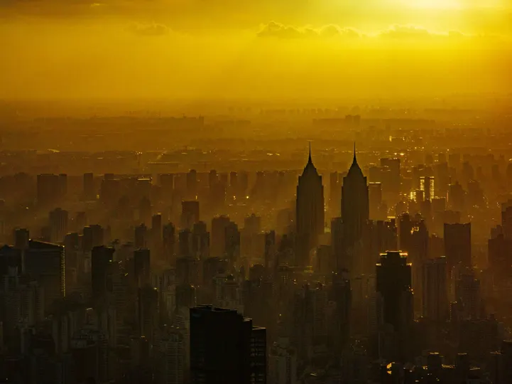 日落时分,上海西区的地标,月星环球港双塔