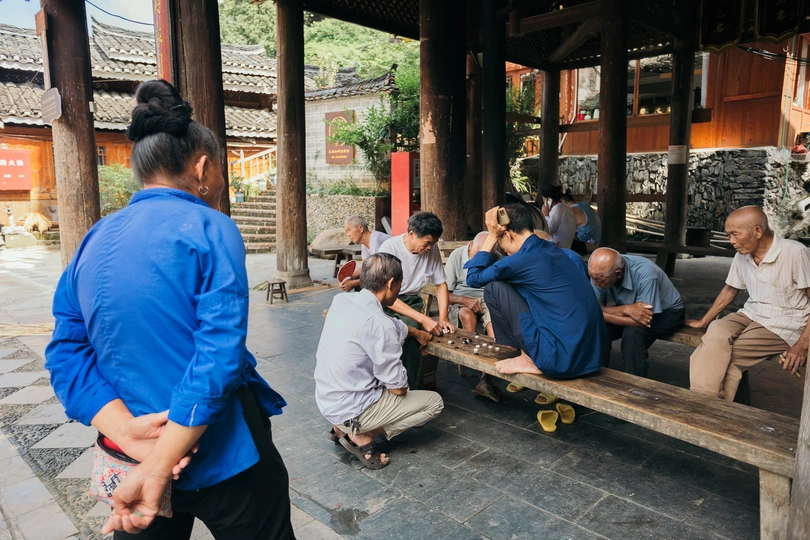 肇兴侗寨有五个鼓楼,当地人称为“团。”寨中分别有仁、义、礼、智、信这五团,分别建有五座鼓楼,外观各不相同。我几乎将镜头对准这里的女性,看到了她们勤奋和热爱生活的那一面。肇兴的上寨大片的稻田,大人和孩子们在傍晚专注的捞鱼。堂安的梯田,云雾缭绕,像是爷爷嘴里吐出的香烟。黄岗古村就像十年前肇兴侗寨的样子,保留着古老的建筑和淳朴的笑容,还有佝偻的身影。在郎德苗寨,错落有致的房屋,穿梭在整个苗寨的白狗,热情的拦门酒和广场表演。 贵州黔东南之行,将八月的回忆停留在那里,回味悠长。⛰️☁️ /黔东南旅拍/ 微博/倩小鱼zizi
