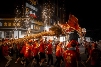 舞火龙是中国传统文化中的一项重要活动,尤其在中秋节期间,它具有深厚的文化含义和象征意义: 1. 祈福与驱邪:舞火龙活动源自古代的民间信仰,人们相信龙是吉祥的象征,能够带来雨水、丰收和好运。通过舞动火龙,人们祈求神龙的保佑,希望驱除邪气和疾病,带来好运和平安。 2. 庆祝丰收:中秋节通常也是农作物收获的时节,舞火龙活动可以看作是庆祝丰收的一种方式,表达人们对自然的感恩和对劳动成果的喜悦。 3. 社区团结:舞火龙活动往往需要社区成员的集体参与,从制作火龙到舞动表演,每个人都是这个活动的一部分。这种集体活动增强了社区的凝聚力和团结精神。 4. 文化传承:舞火龙作为一种传统民俗,是非物质文化遗产的一部分。通过每年的活动,老一辈可以将这一传统技艺和文化意义传递给年轻一代,实现文化的持续传承。 5. 节日庆典:中秋节是中国的传统节日之一,舞火龙活动为节日增添了喜庆和热闹的气氛,是庆祝中秋节不可或缺的一部分。 6. 艺术表现:舞火龙也是一种艺术形式,它结合了舞蹈、音乐、手工艺等多种艺术元素,展现了人们的审美情趣和创造力。 总的来说,舞火龙不仅是一场视觉盛宴,更是承载着丰富文化内涵和社区精神的文化实践