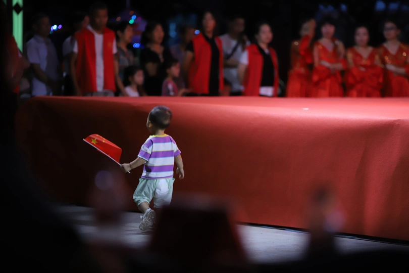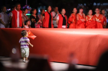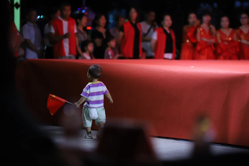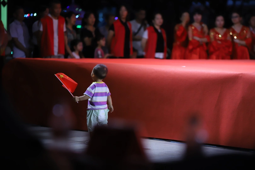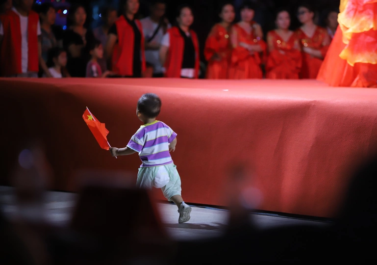 镜头里的视界之初心闪耀中国梦;穿尿不湿挥舞国旗的他,真帅;网友:妥妥的初心闪耀。拍于公益晚会现场,台上正表演公益舞蹈《我的中国梦》台下小朋友就跟着挥舞国旗的一幕,,,
