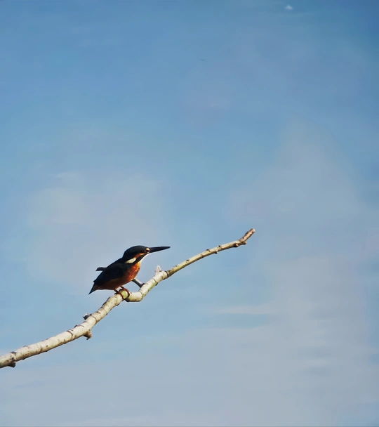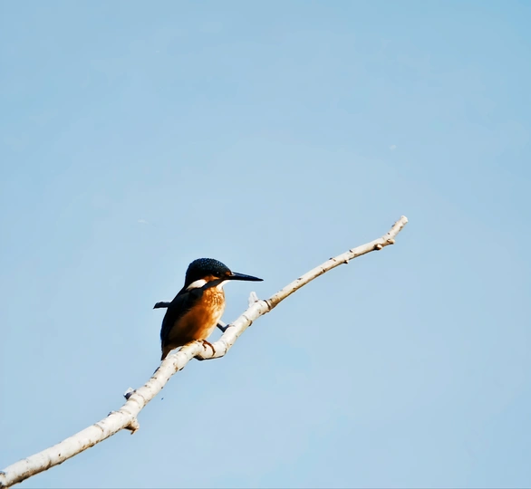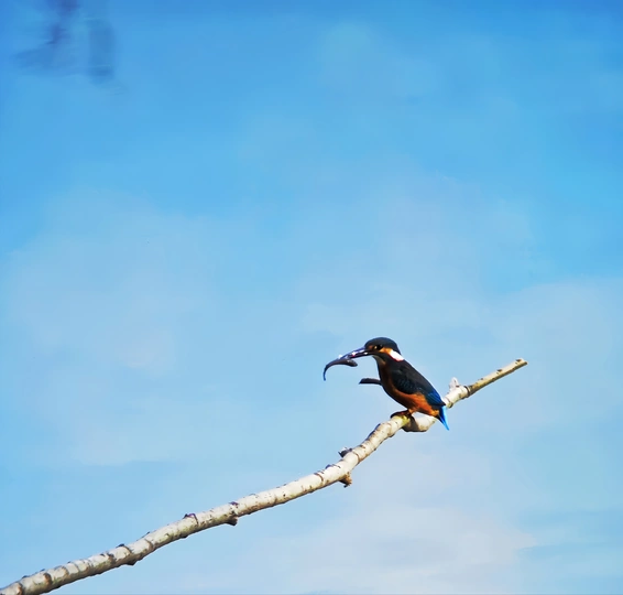 🍏作品采集 今晨散步到池塘边的小小路,无意发现一只翠鸟从水面飞落在枝干上,作为爱好摄影的我,怎能放过这个目标呢。 🥦作品分享 在互相提防中对视过眼神,确认无害时,翠鸟飞下水里,捕获小鱼回落在枝干上吞食起来,若不是路人岀现弄出响声,还能拍更接近更清晰的图片。 🥒总结 随时带上装备,留意身边周围的动向,捕捉可拍目标,让每一次的散步都有收获。