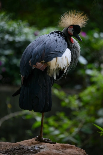灰冠鹤(Balearica regulorum),也被称为非洲冠鹤,以其独特的金色羽冠和红色的裸露皮肤而闻名,通常生活在非洲的湿地、沼泽和草原地区。灰冠鹤是乌干达的国鸟,并且在许多动物园中都能看到它们的身影。