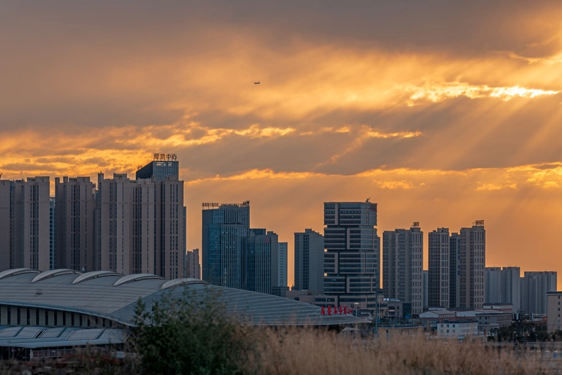 傍晚的乌鲁木齐南站上空