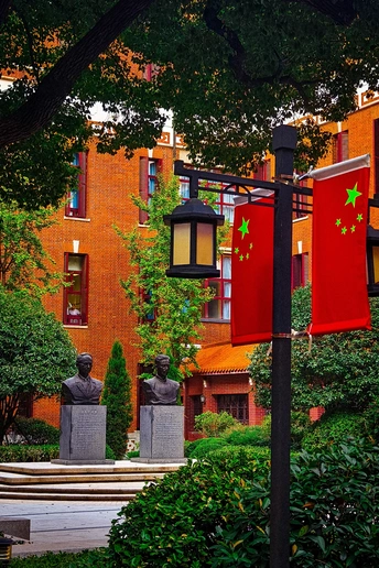 国庆节,百年湘雅到处悬挂五星红旗,祝福祖国繁荣昌盛,充满历史故事的湘雅红楼也格外美丽