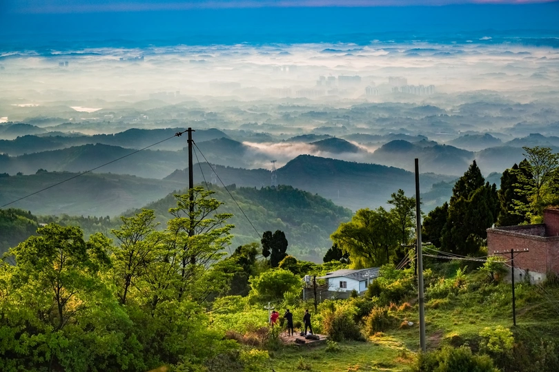 龙泉山日出方向的千里江山图,追光者们记录下这份日出美好