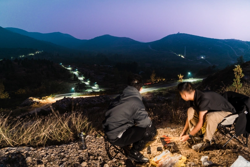 两个大傻子大晚上闲着没事干,骑着摩托干了60公里去山上自己烧烤吃
