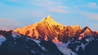七月十六凌晨的满月照在山上,照散了所有云雾,迎来日照金山