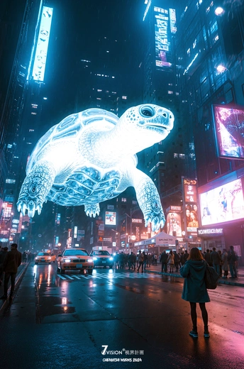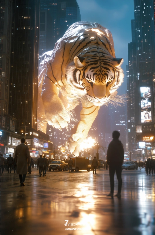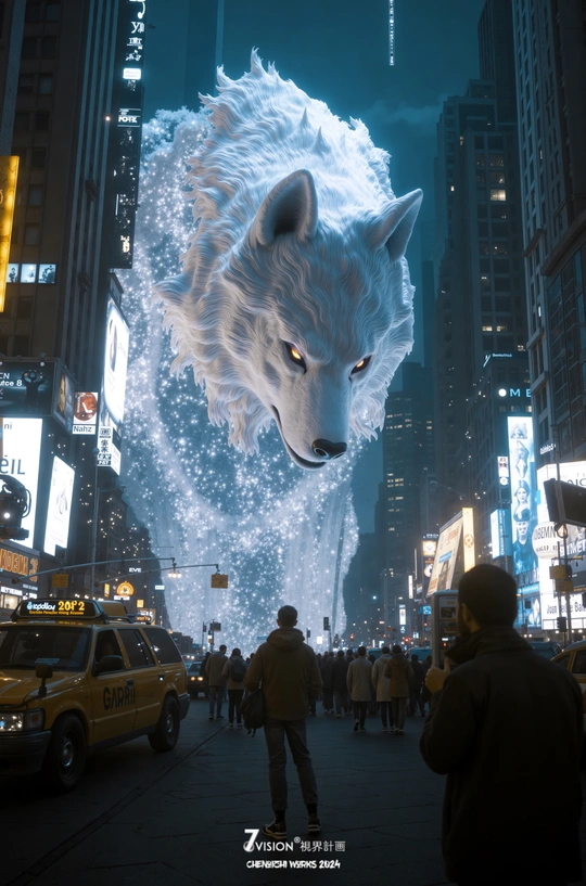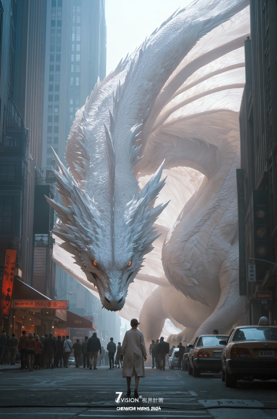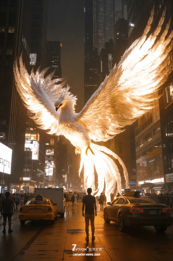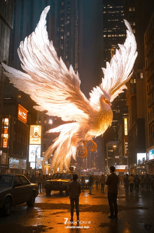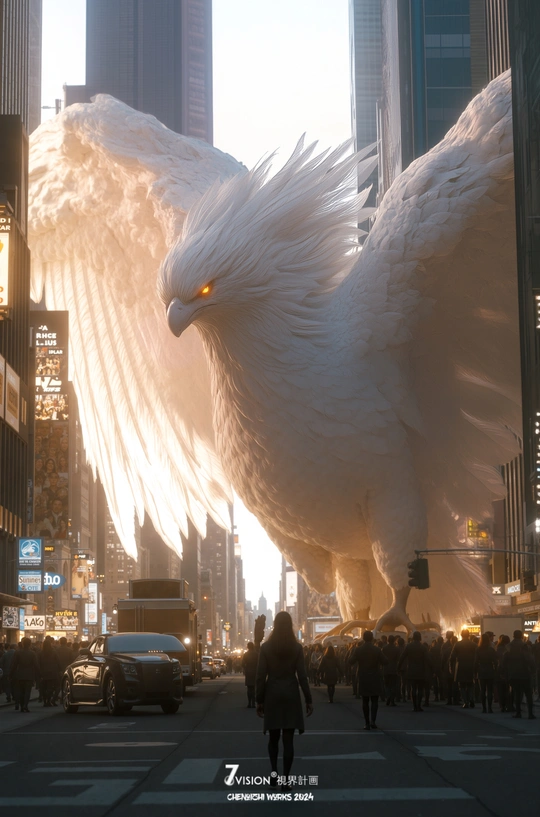 「有一天,我梦见了,属于自己的守护神,漫步在这座颠簸的城市里;它们从天而降,用利爪与羽毛装饰着威严,吐息之间,震撼着街市上的一切;人群争先恐后地围观,三分恐惧,六分欣喜,嘈杂就着烟火,簇拥起来瞻仰着神祈。就这样持续了半晌,巨大的法身缓缓的消失,它们兴许是累了,形同照耀墙角的光斑,渐渐被流转的时间抹去痕迹一样,一切又归于平寂,徒留又一个普通的日常,昼伏夜出,埋头苦干。」 一千零一夜二十八·山海绘卷
