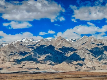 连绵不绝的群山延伸到天际相交的地方,白雪成了光秃的山体和天空的蓝色中间最好的过渡色。