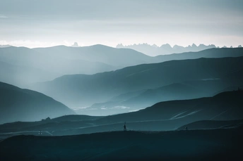 雾气弥漫,山野苍茫,山峰在此刻也成了点滴而成的水墨丹青,它们绵延至天边,只有风中的经幡留在这里,告诉过路的旅人,不要失神忘却了远方!