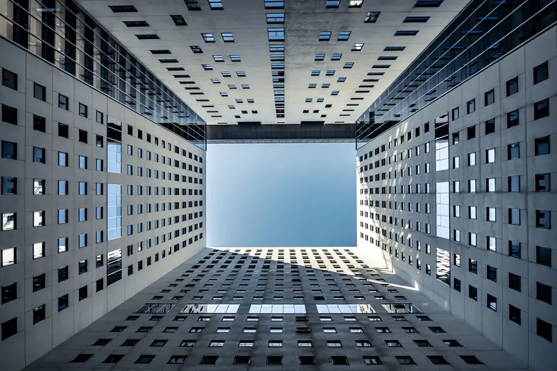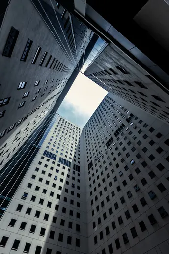 从还未完全开发的大厦向上望,狭长的空间像是怪物一样