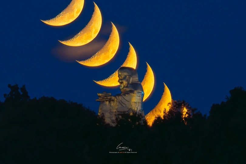 石湖金光大佛悬月 石湖景区娥眉月,月落金光大佛,这次算成功80%,拍了一会发现角度有一定偏差,果断切换机位与角度,天气也非常给力,最终成品还算不错。#日子的旅人# #极摄# #极摄摄影大赛# #苏州机位探索##苏州石湖# @极摄 设备:索尼A7R5 镜头:200-600F5.6-6.3G OSS 支撑系统:LP-324C+G4Pro 焦段:600mm+后期裁切 参数:F6.3 -1.7 is0500 1/3秒 规划软件:极摄APP