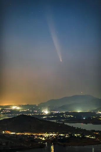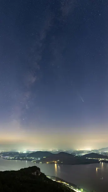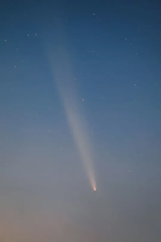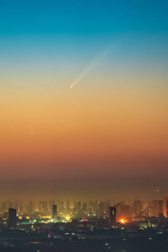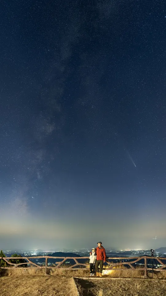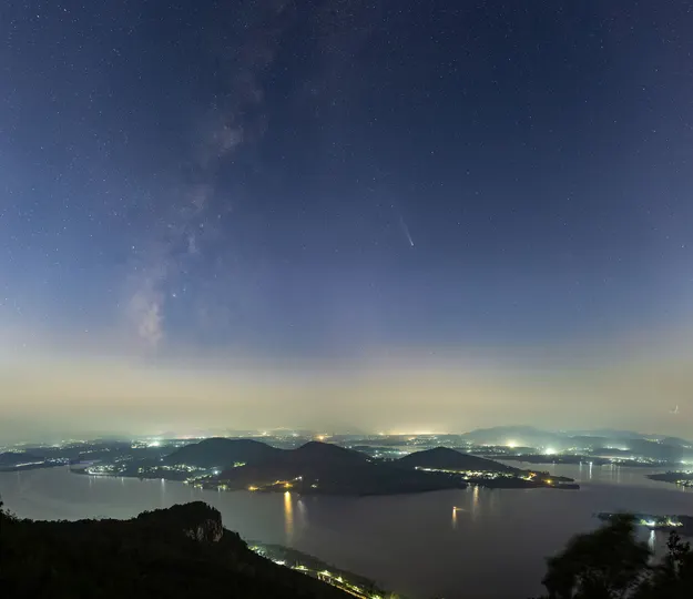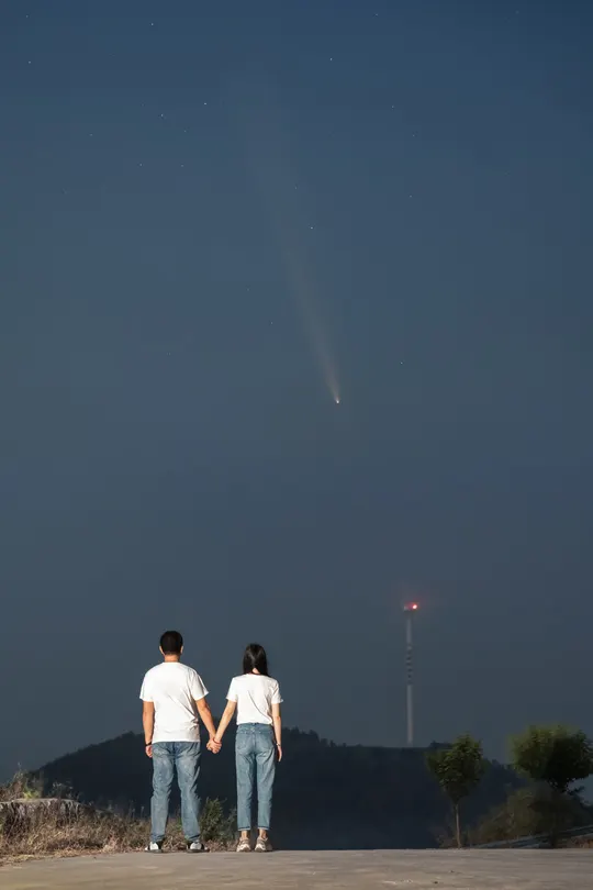 经过几天的不懈努力,一次又一次的早起+一次又一次的上山,顶着7级光污染,终于把凌晨、傍晚和银河同框的彗星全拍了一遍。此一见,再也不会见了。