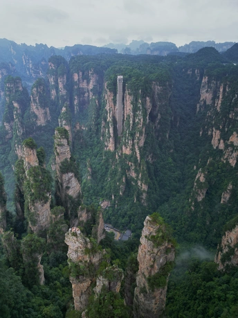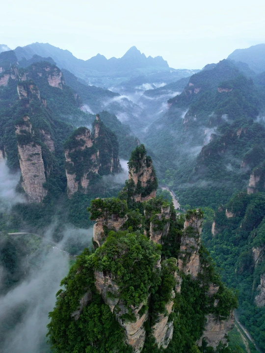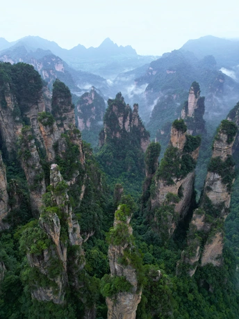 一踏入武陵源,就像走进了一幅流动的山水画卷。奇峰异石,拔地而起,云雾缭绕其间,仿佛仙境一般,最著名的当属“阿凡达”电影中的哈利路亚山原型——乾坤柱,它巍峨耸立,气势磅礴,让人不禁感叹大自然的鬼斧神工。