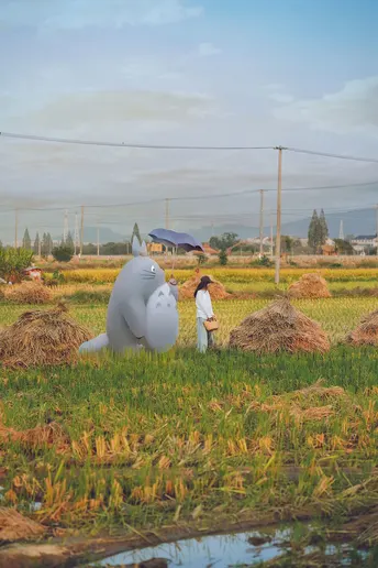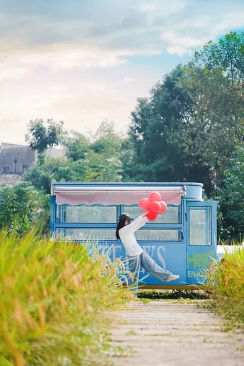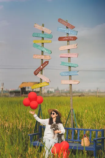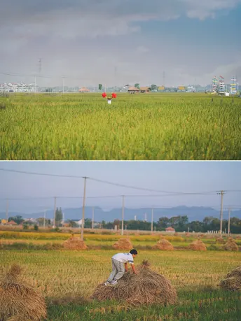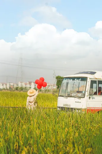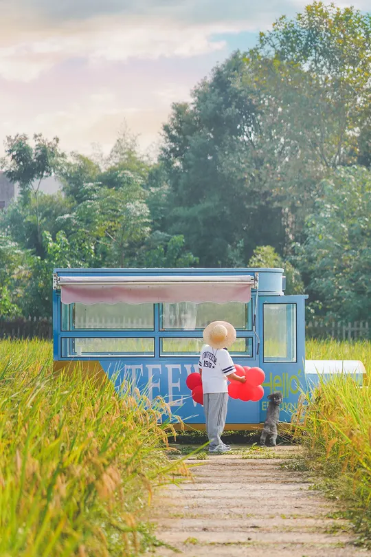 超好拍的稻田🌾,没有之一。 一边是未过度开发保持乡村稻田的田园风(希望一直保持,不要过度开发) 稻田里有许多石板路或泥土小路; 一边是开发许多打卡地📷网红风,移动的巴士咖啡☕️(还没开放)