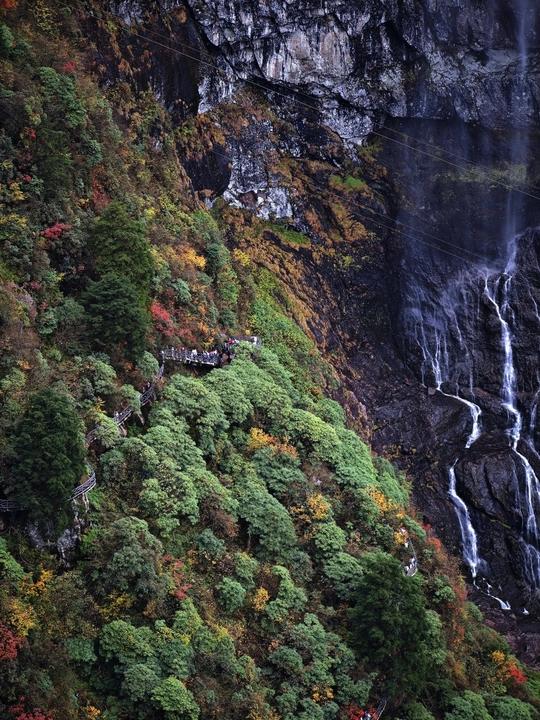 秋天的彩林是最美的,层林尽染,漫山红遍,还有高山流水,疑是银河落九天。