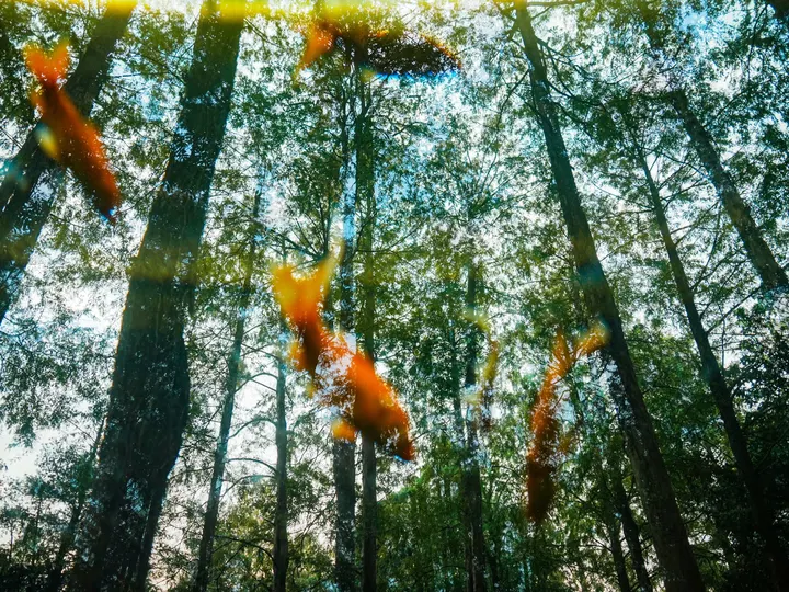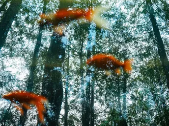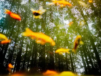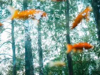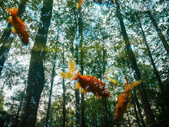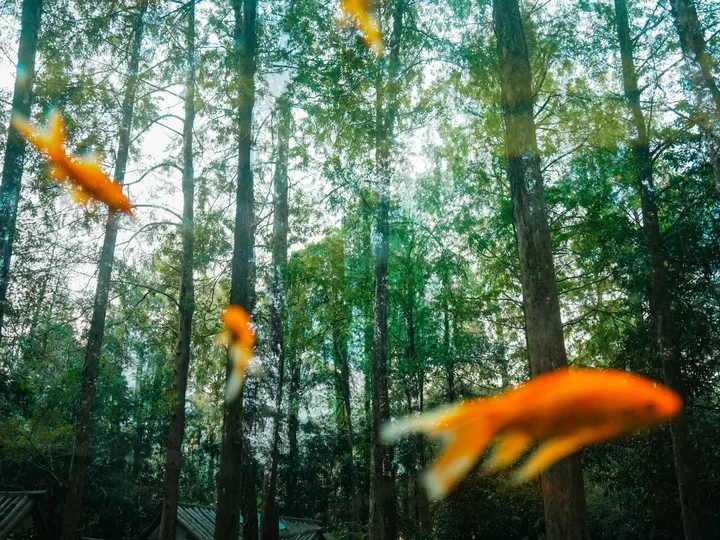 杭州的“金鱼森林”实际上是对杭州曲苑风荷公园内一缸金鱼的浪漫描述。这个鱼缸因其独特的视觉效果而在网络上走红,金鱼在鱼缸中畅游,背景里的森林与之融为一体,给人一种金鱼仿佛在森林中“飞”的梦幻感觉。这种如梦似幻的场景吸引了众多游客前来打卡拍照。