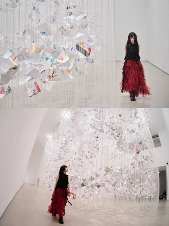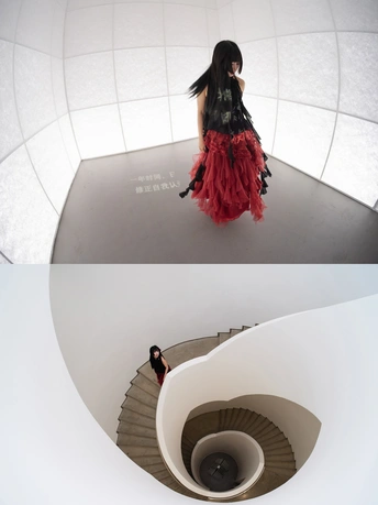 越来越喜欢带上鱼眼去拍各种装置展,换一个视角去观看空间的形状,体会平面和曲面撞出趣味感。