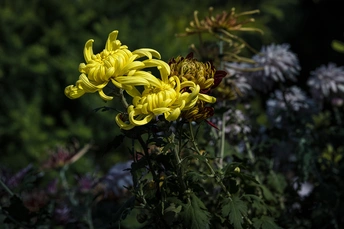 嬉戏中的黄花 ————() 百花丰腴自清瘦, 黄花香影伴白首。 赏花追求吾呆傻, 寸金光阴用不够。 虽已秋风仍不苟, 花开花落无自愁。 一分姿色一年情, 待到花开再会友。
