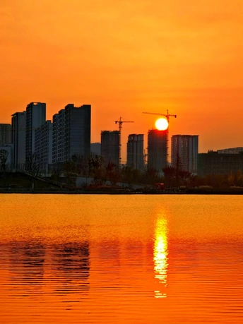 这张照片在多个方面表现良好,暖色调的运用恰到好处,夕阳的金色与水面产生了和谐的反射,勾勒出温馨的气氛。