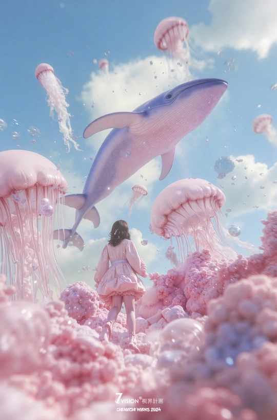 孩子,拾起手中小小的未来,因为在无尽的梦核碎片里,我将送你一片桃粉色的天空。