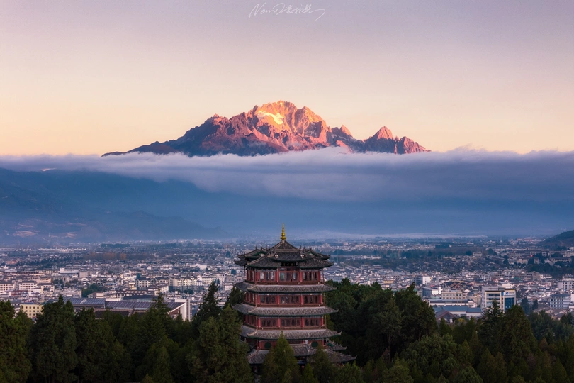 玉龙雪山金山与万古楼