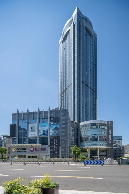 常州嘉业国贸大厦(原国贸大厦)位于江苏省常州市钟楼区南大街街道延陵西路。。2002年,国贸大厦作为当时常州的第一高楼在延陵西路已寂寂站立了数年,浙江国际嘉业房地产开发有限公司斥资一亿多元独家买下整幢大楼,并更名为“嘉业国贸广场”。改造后的大厦建筑高度155.6米,建筑面积为34000平方米。38层顶楼为常州首家大型旋转餐厅,大楼裙房为购物中心。嘉业国贸大厦的外观设计简洁现代,体现了当时常州建筑追求高度与现代化的趋势。嘉业国贸大厦作为常州市中心老牌楼宇,区位优势明显,服务贸易、教育培训等业态集聚。